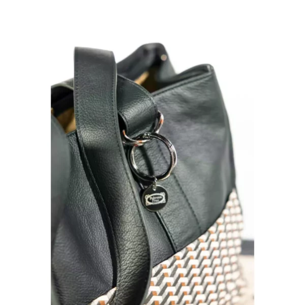 Anahtarlık, anahtarlara veya bisküvi cebine takılabilen şık ve çok yönlü bir aksesuardır. Parlak nikel galvanizli Zama halkalı dokuma Pelle Frau® deriden yapılmıştır.