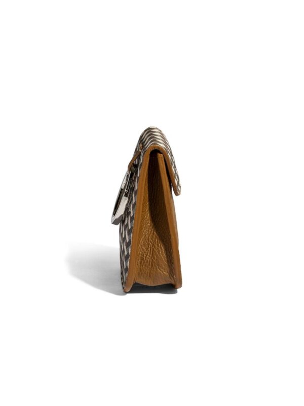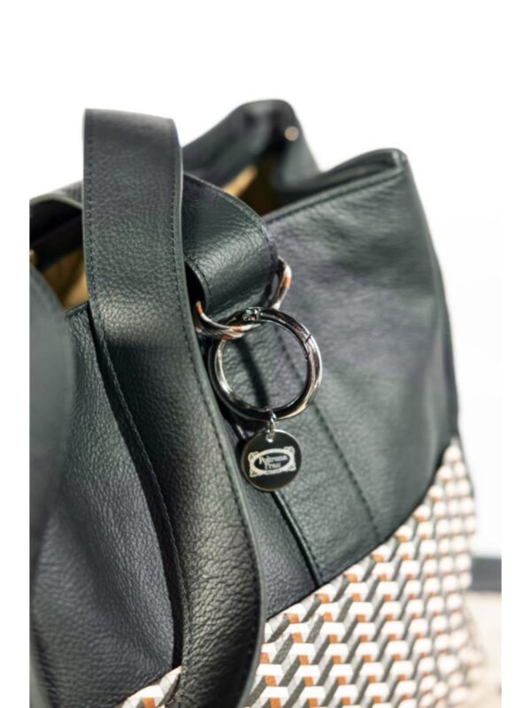 Pelle Frau köpek çantası, 12 kg’a kadar olan küçük/orta boy köpekler için ideal taşıma çözümüdür. Kabuk ve güçlendirilmiş omuz askısı Pelle Frau derisinden yapılmıştır. Dört ön cebi ve omuz askı halkası Pelle Frau Motif Weavers derisinden yapılmıştır. İç astar pamuk kumaşından yapılmış olup iç cepleri deri kenarlı ve metal fermuarlıdır. İç astar çıkarılabilir ve yıkanabilir şekilde tasarlanmıştır, böylece maksimum hijyen sağlanır. Çanta, köpeğin tasma bağlantısı için dokuma deri emniyet kordonu ve karabina içerir.