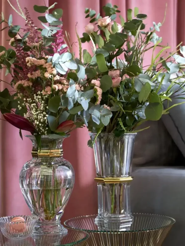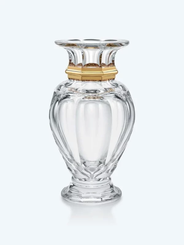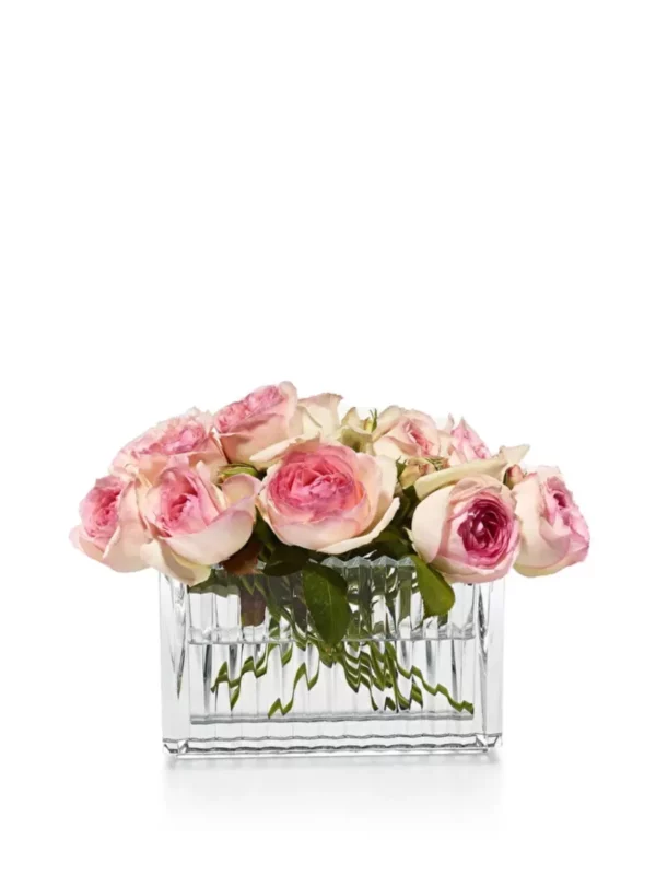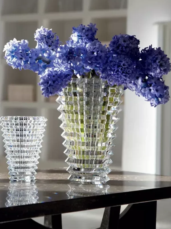 Çok yönlü bir tasarım olan Grand Louxor, zamanın havasında. Şimdi bir vazo, şimdi bir dekorasyon objesi ya da bir masanın baş parçası olan zarif kesim silüeti sonsuz ışık piramitleriyle süslenmiştir. Her birinin çiçek ekleyerek kendi tarzında yorumlayacağı parlak bir hediye veya büyük bir mum.