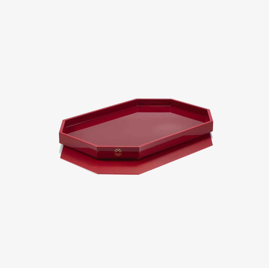 Octogone tepsi, 3 boyutta mevcut olan güzel, lake bir parçadır. Baccarat’ın ikonik imzası olan kırmızı sekizgen püskülden ilham alan bu yeni parçalar, Octogone koleksiyonunu genişleten bir dizi rafine lake aksesuardan oluşur. Sekizgen şeklindeki tepsi, atalardan kalma sanat kullanılarak titizlikle el işçiliğiyle üretilmiştir. Parlak yüzeyi ışığı yakalar ve Baccarat’ın kristal tasarımlarını vurgular. Her tepsi, zarif bir malzeme ve doku kontrastı katan çıkarılabilir bir deri ekiyle birlikte gelir. Octogone tepsi, mevsimler boyunca zenginleşen ve aynı koleksiyondaki bardak altlığıyla eşleştirilen çeşitli tonlarda mevcuttur.