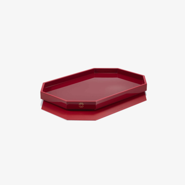 Octogone tepsi, 3 boyutta mevcut olan güzel, lake bir parçadır. Baccarat’ın ikonik imzası olan kırmızı sekizgen püskülden ilham alan bu yeni parçalar, Octogone koleksiyonunu genişleten bir dizi rafine lake aksesuardan oluşur. Sekizgen şeklindeki tepsi, atalardan kalma sanat kullanılarak titizlikle el işçiliğiyle üretilmiştir. Parlak yüzeyi ışığı yakalar ve Baccarat’ın kristal tasarımlarını vurgular. Her tepsi, zarif bir malzeme ve doku kontrastı katan çıkarılabilir bir deri ekiyle birlikte gelir. Octogone tepsi, mevsimler boyunca zenginleşen ve aynı koleksiyondaki bardak altlığıyla eşleştirilen çeşitli tonlarda mevcuttur.