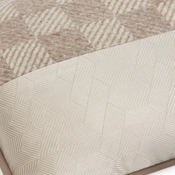 Sürdürülebilirliğe büyük önem verilerek tasarlanmış, ekose ve yastıktan (ayrı olarak satın alınır) oluşan seri. Doğru yapağı tonlarını (beyazdan koyu kahverengiye, ara tonlardan geçerek) seçmek için çiftçilerin desteği, Prince of Wales kumaşının boya veya kimyasal işlemlere gerek kalmadan doğal tonlarda üretilmesine olanak tanıyor. Bu kumaşın oluşturulmasına yönelik tüm süreçler, kısa bir tedarik zinciriyle İtalya’da yapılıyor; yün değirmeninde kullanılan elektrik yenilenebilir kaynaklardan geliyor. Merinos yünü, üstün ısı performansına ve yumuşaklığa sahip, daha hafif bir kumaş elde edilmesini sağlar. Yastık, kumaş kalıntılarıyla birleştirilmiş ekoseyle aynı kumaştan yapılmıştır; ince tüy ve yumuşak pamuklu muslin ile doldurulmuştur.