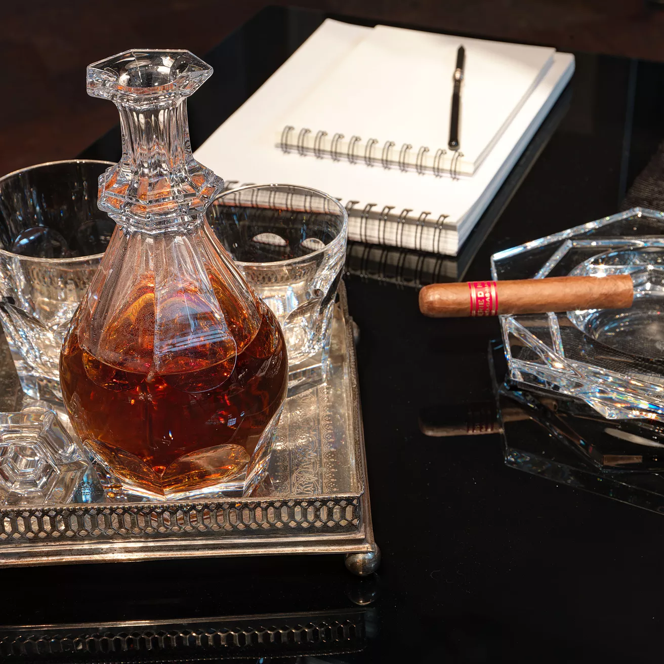 Harcourt Abysse kül tablası, Harcourt tarzının ayırt edici işaretlerini taşıyor: altıgen form ve düz kesimler, ona zamansızlık ve işlevsellik kazandırıyor. Harcourt Abysse masa aksesuarları, sekizgen ve düz kesimleriyle Harcourt serisinin tarzından ilham alarak bu ikonik Baccarat koleksiyonunu tamamlıyor. Fotoğraf çerçevesi, küllük ve saatler, sembolik Harcourt gözlükleri gibi her odaya zarafet ve zamansızlık getiriyor.