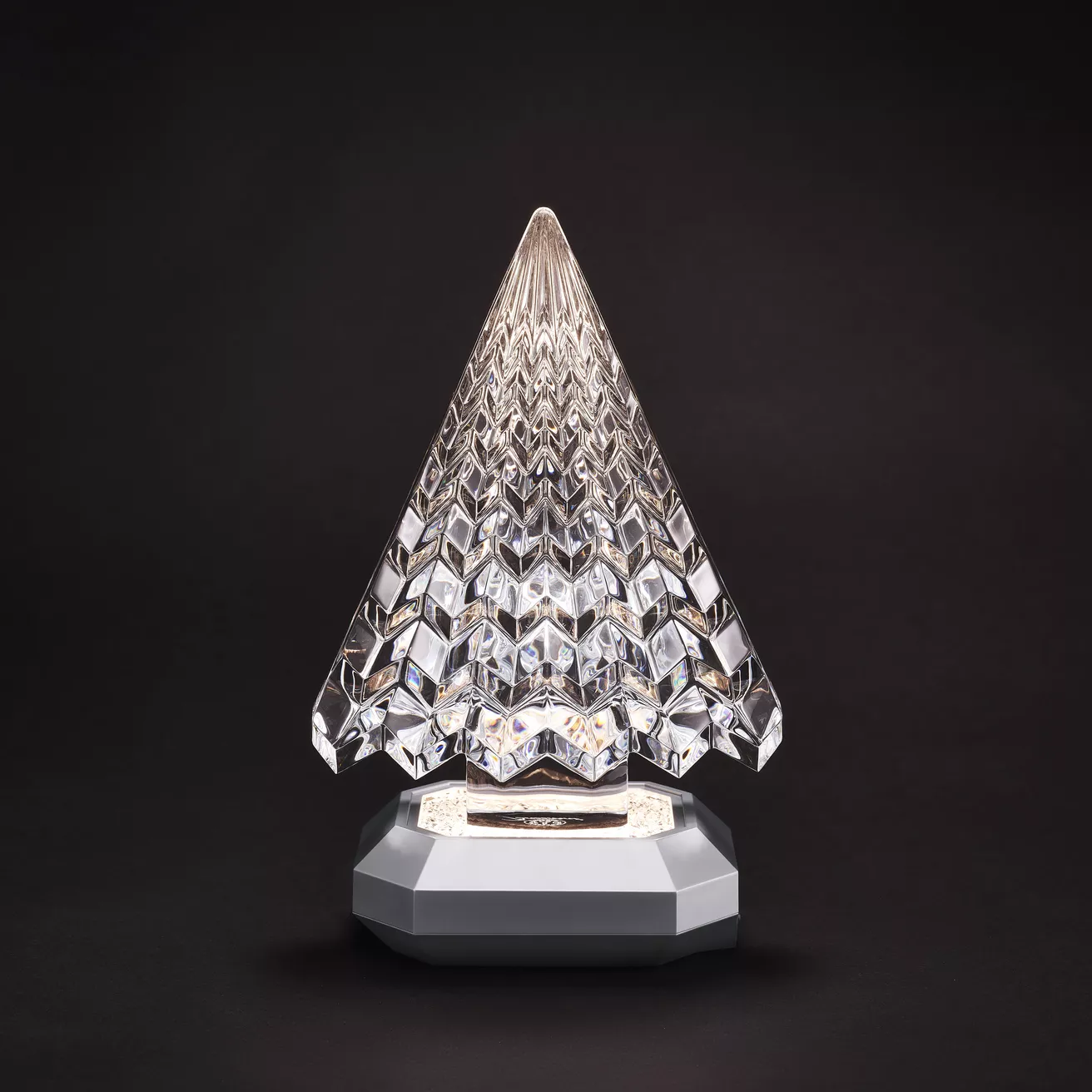 Baccarat avizelerinin imza unsuru olan sekizgenden ilham alan parlak taban, kristalin saflığını güçlendirir ve ışık efektlerini vurgular. Çeşitli aydınlatma yoğunlukları ve hızları ve sıcak veya soğuk ton seçenekleriyle aydınlık taban, farklı bir atmosfer yaratır. Geri dönüştürülebilir çinko ve alüminyum alaşımından yapılmış olup USB-C (dahil değildir) aracılığıyla şarj edilebilir ve 8 saatlik kullanım ömrüne sahiptir.