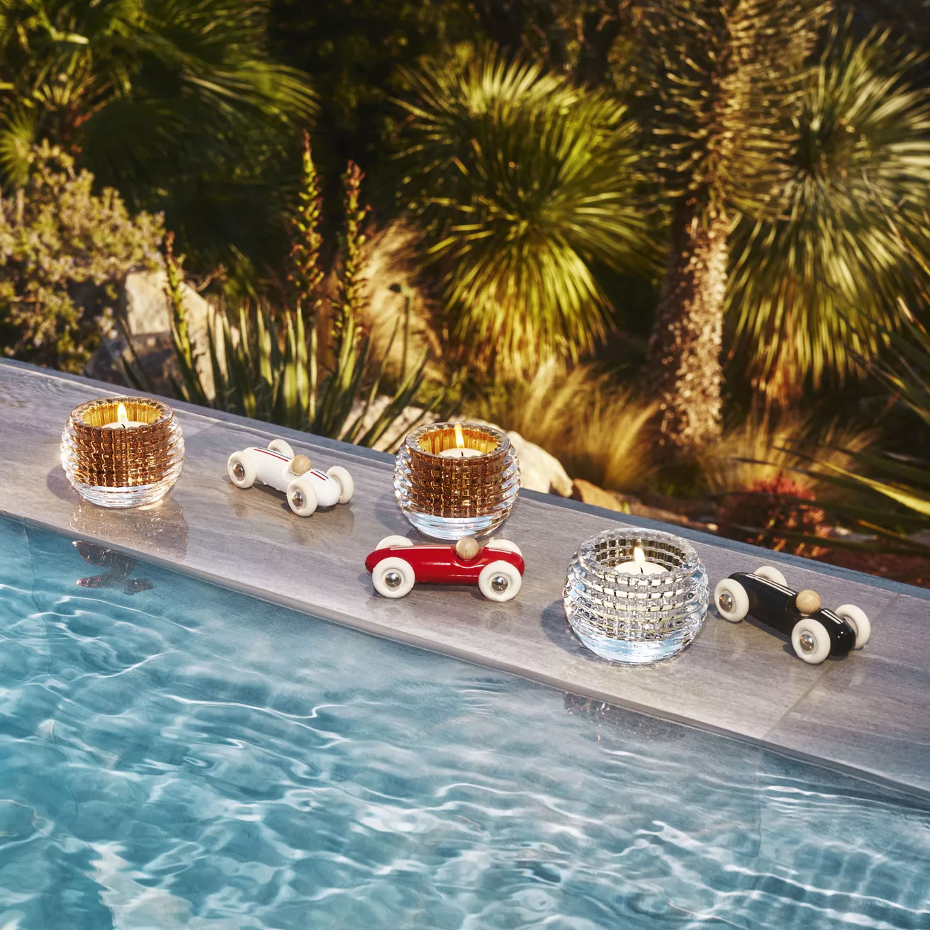Baccarat kristalindeki Göz Mumu Kavanozu, olağanüstü kesimi sayesinde ışık üzerinde olağanüstü bir oyun yayıyor. Şeffaf, kırmızı ve altın rengi seçenekleri bulunan Eye mum kavanozu, mum ışığını parlak bir şekilde yansıtır. Modaya uygun renkler, bunu eşsiz teknik gelişmişliğe sahip modern bir parça haline getiriyor. Koleksiyonda yatay dış kesimler ve dikey iç kesimler yer alıyor ve ayrıca dikdörtgen ve oval vazolar halinde geliştirildi.
