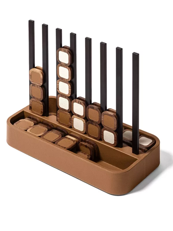 Deri kutuda paketlenmiş çift kart seti.