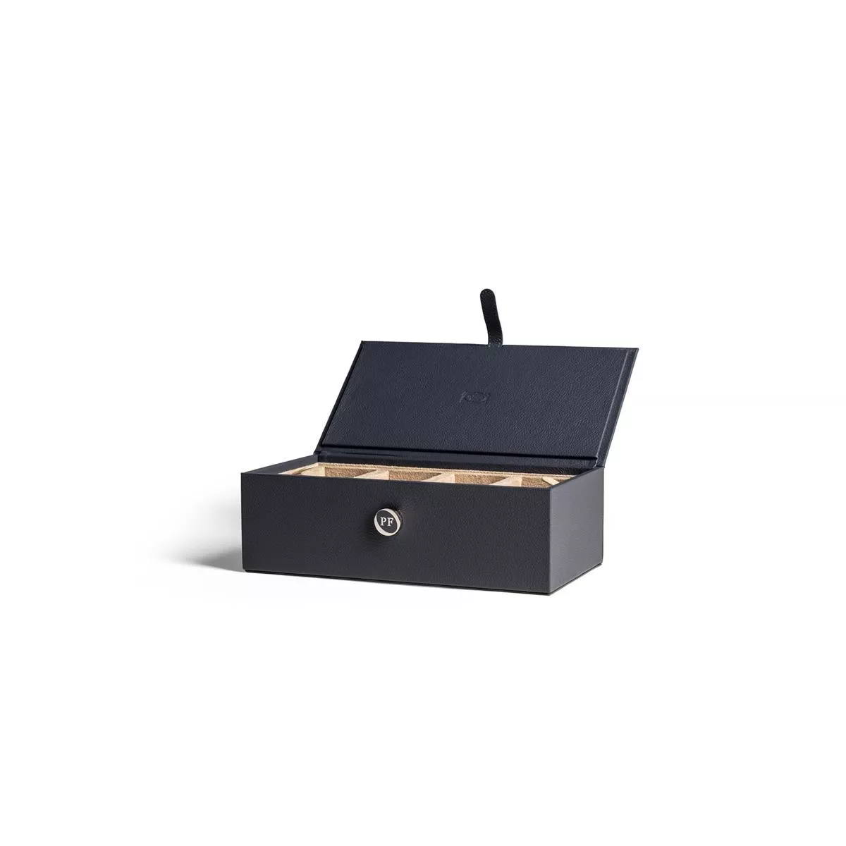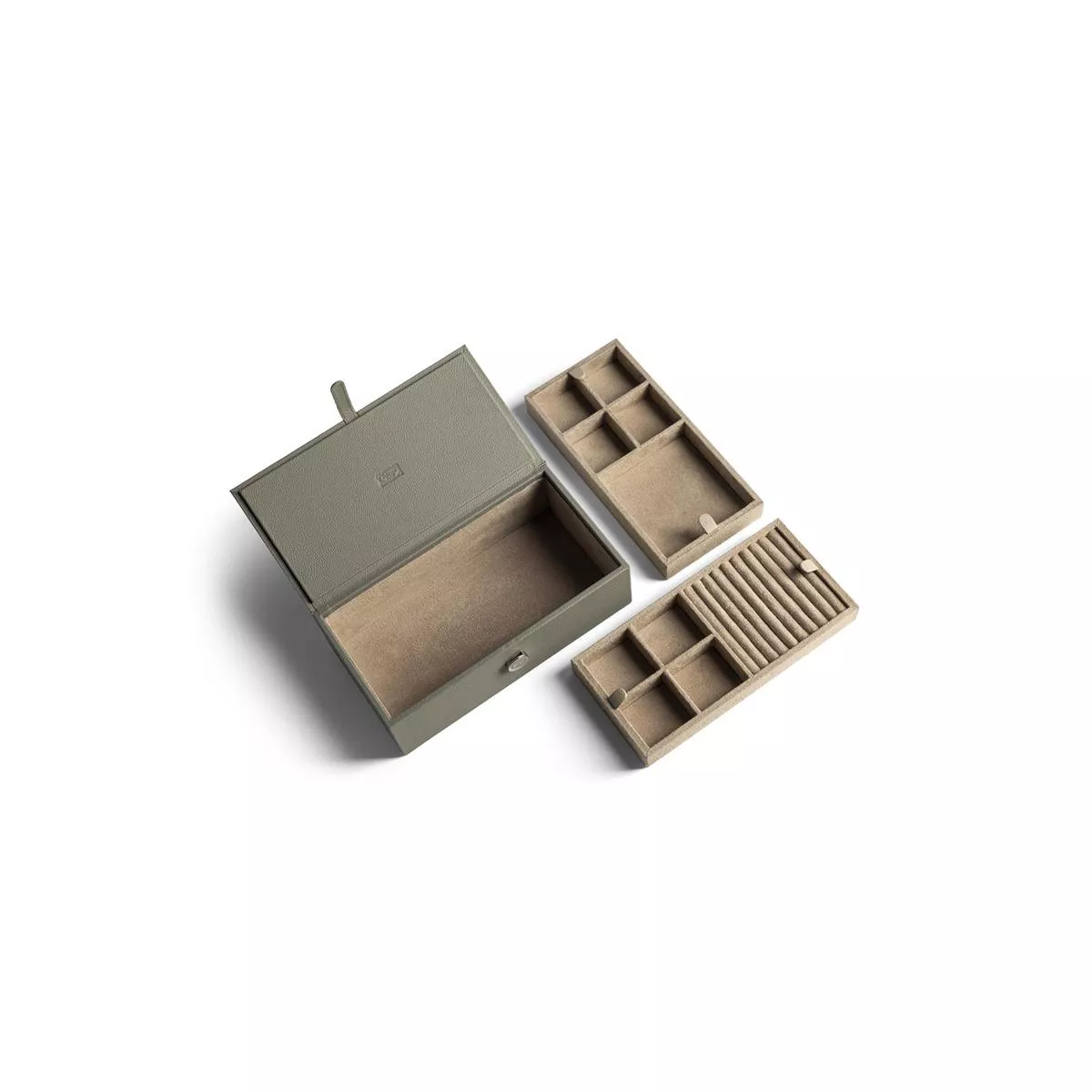 Fascination, kare ve dikdörtgen seçenekleri bulunan, Pelle Frau® deri döşemeli mücevher ve saat çantası setidir. İç kısımda koruma için yumuşak bir mikrofiber astar bulunur. Çıkarılabilir tepsiler farklı iç konfigürasyonların tanımlanmasına olanak tanır. Kapak elmas şekliyle süslenmiştir ve metal bir halkadan kayan ve toka görevi gören bir deri kayışa sahiptir. Fascination, kare ve dikdörtgen seçenekleri bulunan, Pelle Frau® deri döşemeli mücevher ve saat çantası setidir. İç kısımda koruma için yumuşak bir mikrofiber astar bulunur. Çıkarılabilir tepsiler farklı iç konfigürasyonların tanımlanmasına olanak tanır. Kapak elmas şekliyle süslenmiştir ve metal bir halkadan kayan ve toka görevi gören bir deri kayışa sahiptir.