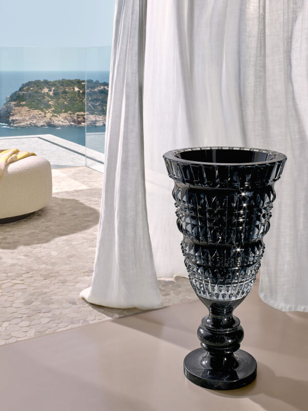 Olağanüstü boyutlarda kristal bir başyapıt olan Celimène vazo, Baccarat ustalarının olağanüstü teknik bilgisini kristalize ediyor. Derin elmas kesimli eğimler sonsuz yansımalar üretir. Georges Chevalier tarafından 1930’larda yaratılan Célimène vazo, farklı bir teknik başarıyı temsil ediyor ve tipik Art Deco hacimlerinin geometrisini mükemmel bir şekilde gösteriyor.