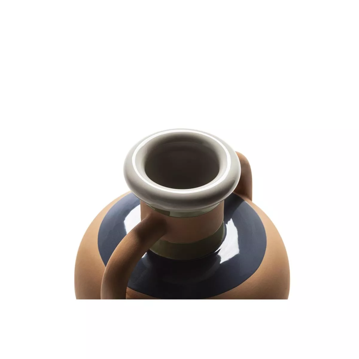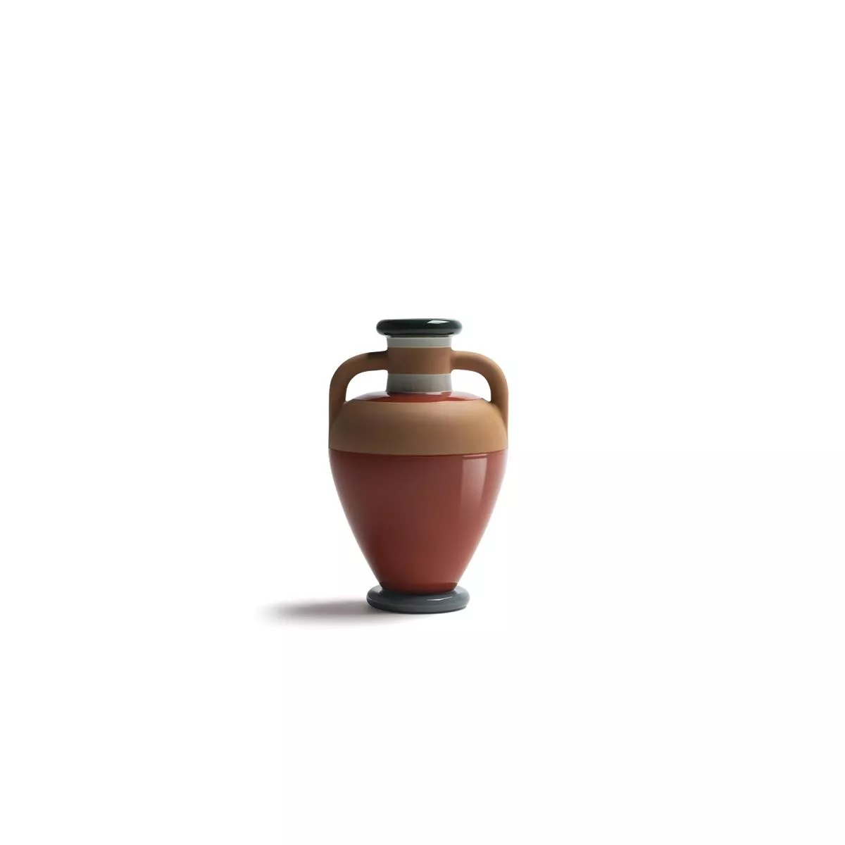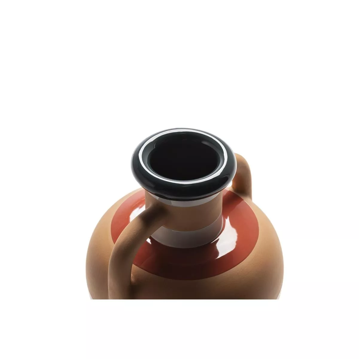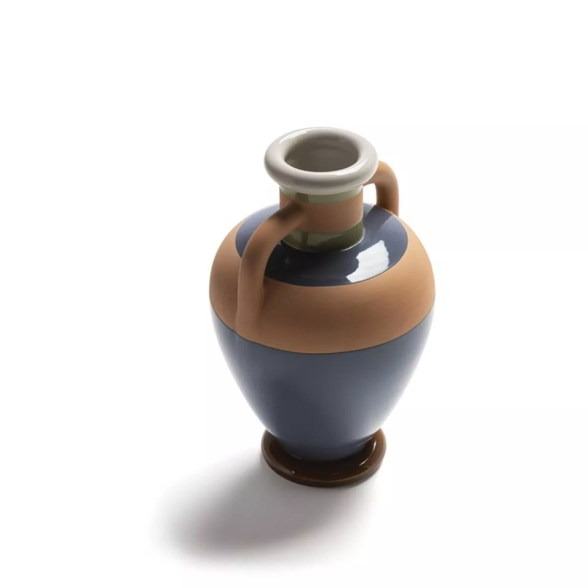Elle döndürülmüş ve elle boyanmış seramik İkiperu Vazo, antik Etrüsk dekoratif objelerinin şeklini yansıtıyor. Yuvarlak formuyla İkiperu Vazo, çarpıcı bir çoklu duyusal etki için renkli sırlı seramik ve sırsız seramiği birleştiren yüzeyleri olan yatay bantlardan oluşur. İkiperu Vazo, Pelle Frau® deri tonlarından ilham alan iki renk kombinasyonuyla mevcuttur.