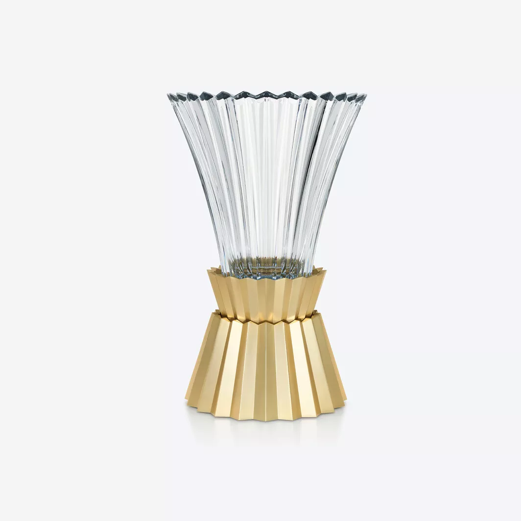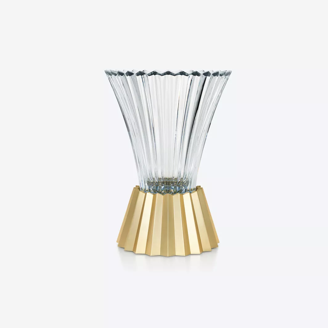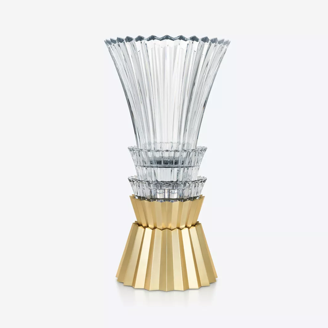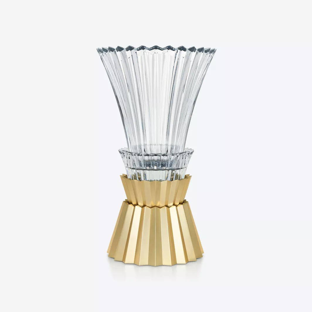 athias’ın hayal ettiği PLAY vazo, gerçek bir ışık heykeli gibi dururken, isteklerinize göre kişiselleştirilebilen modüler bir yaratımdır. Tasarımcı Mathias, Mille Nuits koleksiyonunun kodlarını, barok zarafeti ve modernliği birleştiren çok yönlü bir yaratımla bir kez daha yeniden ele alıyor. Venedik kesimleriyle süslenmiş beş parçadan oluşan vazo, o anın ilhamına göre dönüştürülebiliyor. Şeffaflık ve altın yansımalar arasındaki malzemelerin ittifakı çarpıcı bir zıtlıklar oyunu yaratıyor. Büyüyle dolu, doğu saraylarına layık bir parça.