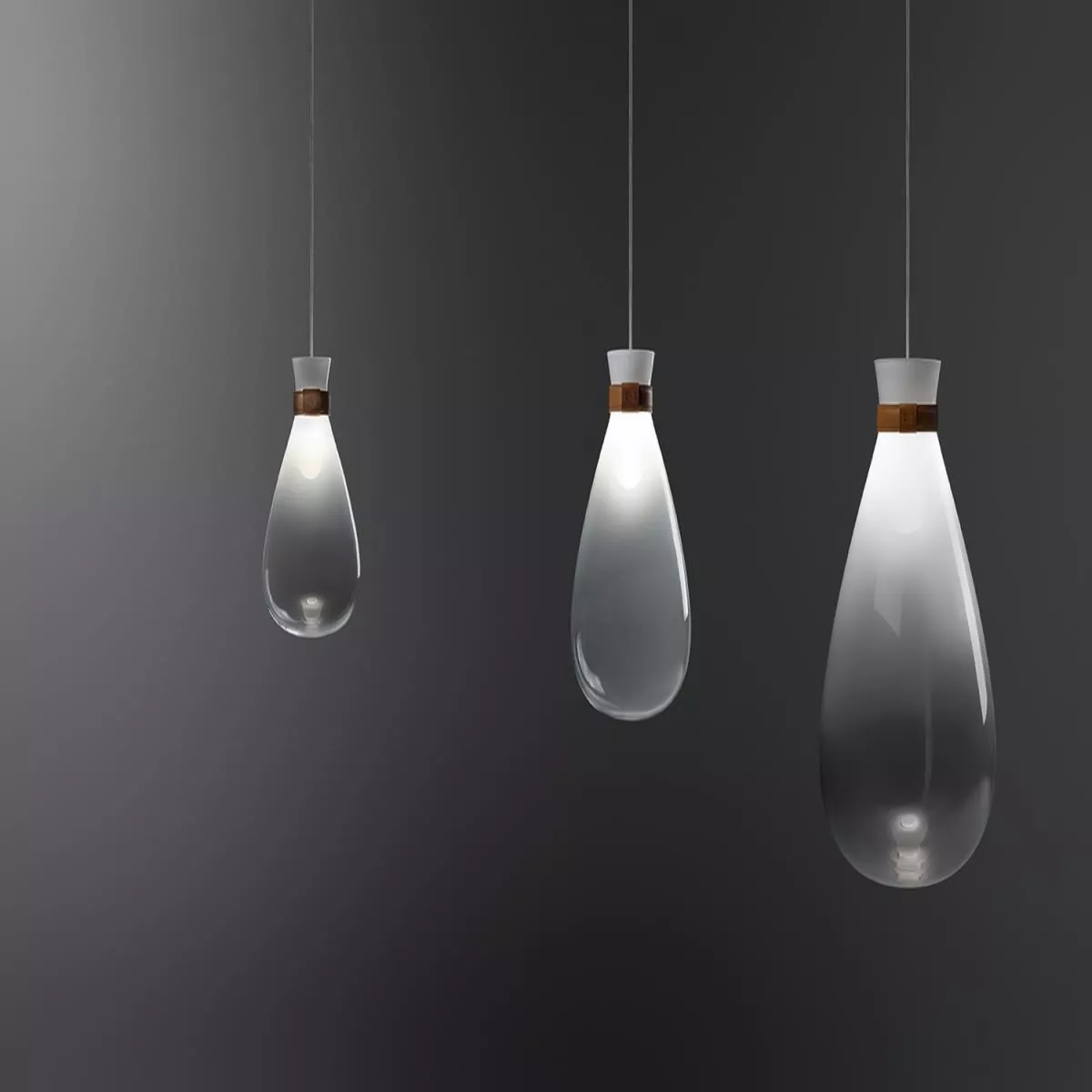 Ruhani ve neredeyse ağırlıksız olan dış küre, soluk süt beyazı veya dumanlı gri tonlarındadır. İçeride, inci kaplamalı mat beyaz üfleme camdan yapılmış aydınlatma armatürü gözle görülür şekilde daha sağlamdır.