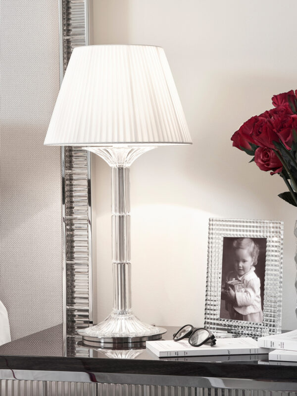 Holly lambası yer ve masa lambası olarak mevcuttur. Stilize bir kadın profili oluşturan, yumuşak, ince hatlara sahip şeffaf cam siluetinden oluşuyor. Destek tabanı boyalı metalden yapılmıştır. Taban ile gövde arasındaki ve gövde ile ampul yuvası arasındaki bağlantı elemanları perdahlı pirinçten yapılmıştır. Abajur dış kısmı kanvas, içi PVC olmak üzere çift katmanlıdır. Holly’nin zemin versiyonunda çift abajur mevcuttur.