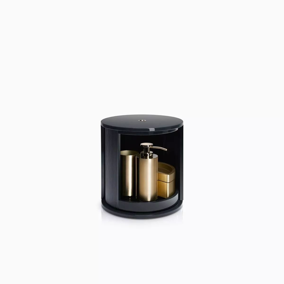 Secret, banyo aksesuarlarını saklamak ve saklamak için iç kısmı kendi kendine dönen, döner açılıp kapanan bir banyo seti kabıdır. Gizli mıknatıslardan oluşan bir sistem, kapalı ve açık konumu kolaylaştırır. Yapının parlak toz mavi cilası, dıştan dikey bir kannet ile karakterize edilir. Bu seri aynı zamanda kabın içine yerleştirilecek açık altın lakeden (ayrı olarak satın alınır) bir yarım ay kutusundan oluşur. Kabın üstünde açık altın renkli GA logosu.