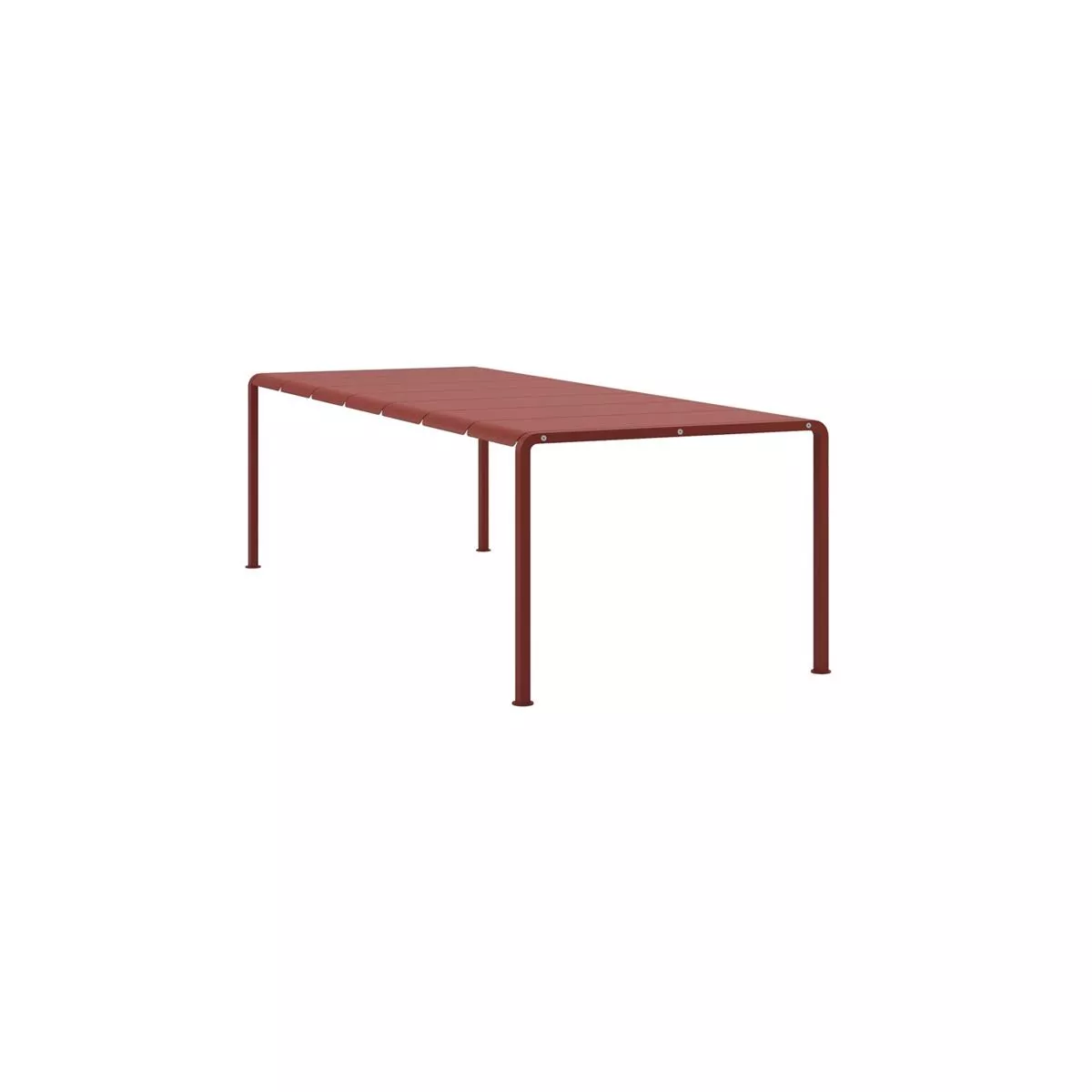 Paslanmaz çelik çerçeveli, üst kısmı alüminyum çıtalı, farklı boyutlarda masa serisi.