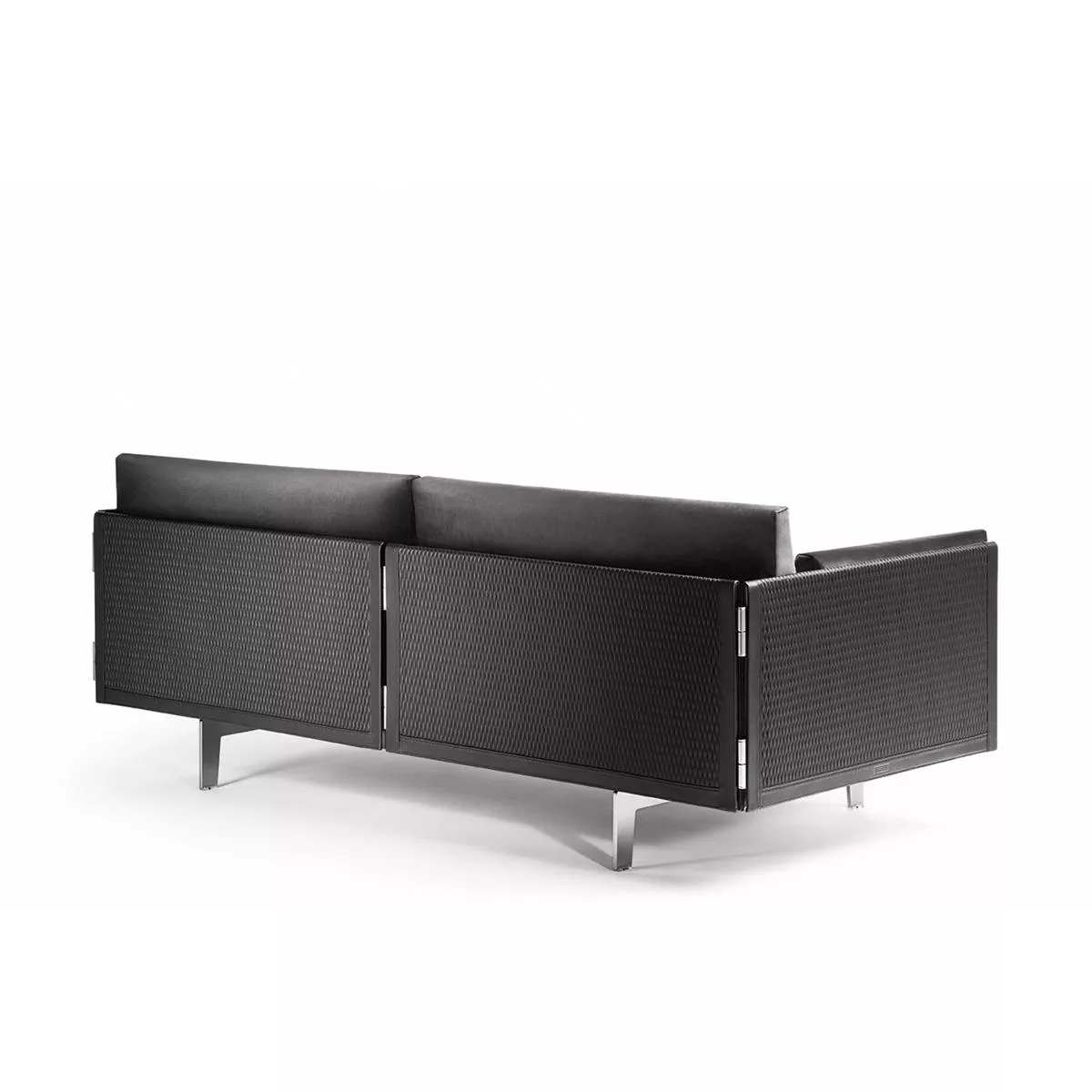 Clayton kanepenin minderleri, kontrast iplik kullanılarak X şeklinde hassas el dikişleriyle süslenmiştir. Koltuğun yayları, el dokuması eyer-deri kemerlerden oluşan bir yapı tarafından desteklenir. Kanepenin mimarisi net ve hafiftir. Koltuk, Rutenyum kaplamalı çelik bıçak ayaklarının üzerine oturmaktadır.Clayton’un deriyi kumaş veya kadife yastık kılıflarıyla birleştiren versiyonu özellikle duyular açısından zengindir. Hafif poliüretan köpük dolgulu çelikten yapılmış sırtlık ve kolçak panelleri, Rutenyum kaplamalı görünür metal menteşelerle birleştirilmiştir. Kolçak ve sırt dayanağı yastıklarının yumuşak dolgusu kaz tüyüdür. Clayton kanepenin tamamen Pelle Frau® deri veya geniş Poltrona Frau kumaş yelpazesiyle birleştirilmiş Pelle Frau® deri döşemeli versiyonu mevcuttur.