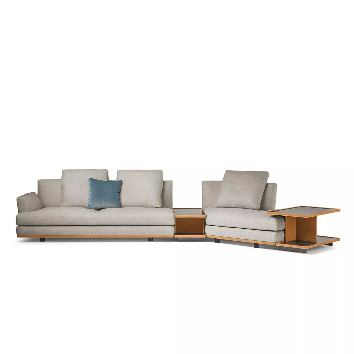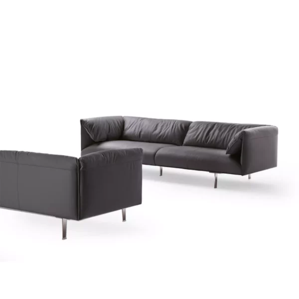 Come Together aksesuarlarının döşemeleri ve detayları koltuk modülleriyle eşleşiyor ve onları tamamlıyor. Kalaylı kaplamalı, kazınmış ve fırçalanmış paslanmaz çelikten üst kısımlar ve rafların görsel derinliği ve yumuşaklığı, deriyi ve kumaşı öne çıkarır.