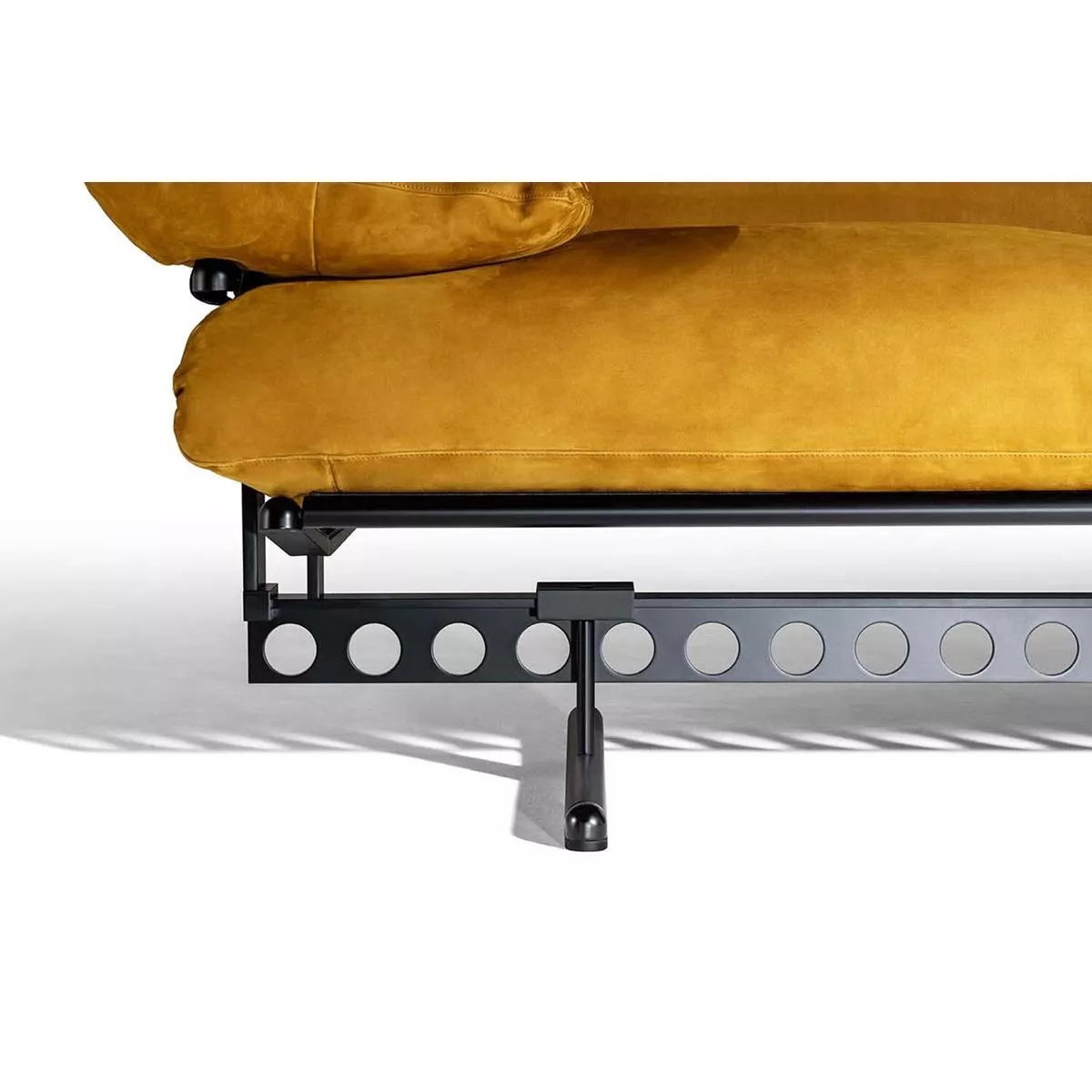 Görünüşte basit olan minderler, 1980’lerin tasarımının yinelenen bir detayı olan ve geleneksel döşemeye gönderme yapan sırt dayanağı düğmelerinden, koltuk minderleri ile sırt dayanağı arasındaki bağlantının optimum örtüşmesi için hafif sivriltilmesine kadar pek çok ayrıntıyı gizler. Deri veya kumaştan çıkarılabilir kılıflara sahip minderler, deforme olmazlık ve mutlak rahatlık sağlayan poliüretan köpük dolgulu kaz tüyü ve polyester dolguyla doldurulmuştur.