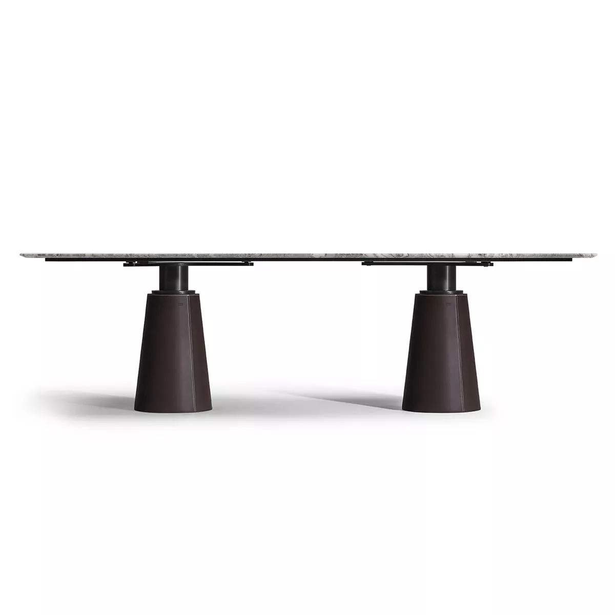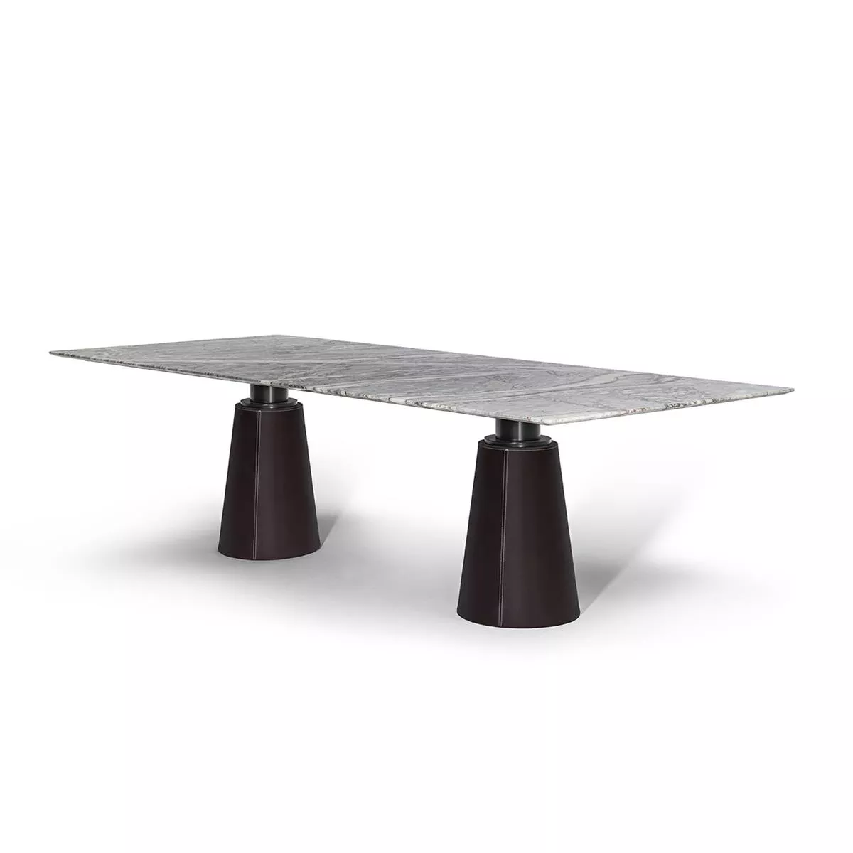 Mesa masa, geleneksel yarma tekniği sayesinde kayanın yüzeydeki doğal oluklarını ve çizgilerini koruyan Ligurya arduvazından bir tablaya sahiptir. Parlatılmış çelik sacdan yapılmış alt raf daha fazla direnç sağlar. Yük taşıma sütunu, tabana yerleştirilmiş plastik şekilli bir uç ile gri pietradan yapılmıştır. Üst kısım ile sütun arasındaki bağlantı, üst kısmın konumunu değiştirmek mümkün olacak şekilde üç braketli bağlantı plakasının takıldığı boru şeklinde parlatılmış çelikten yapılmıştır.