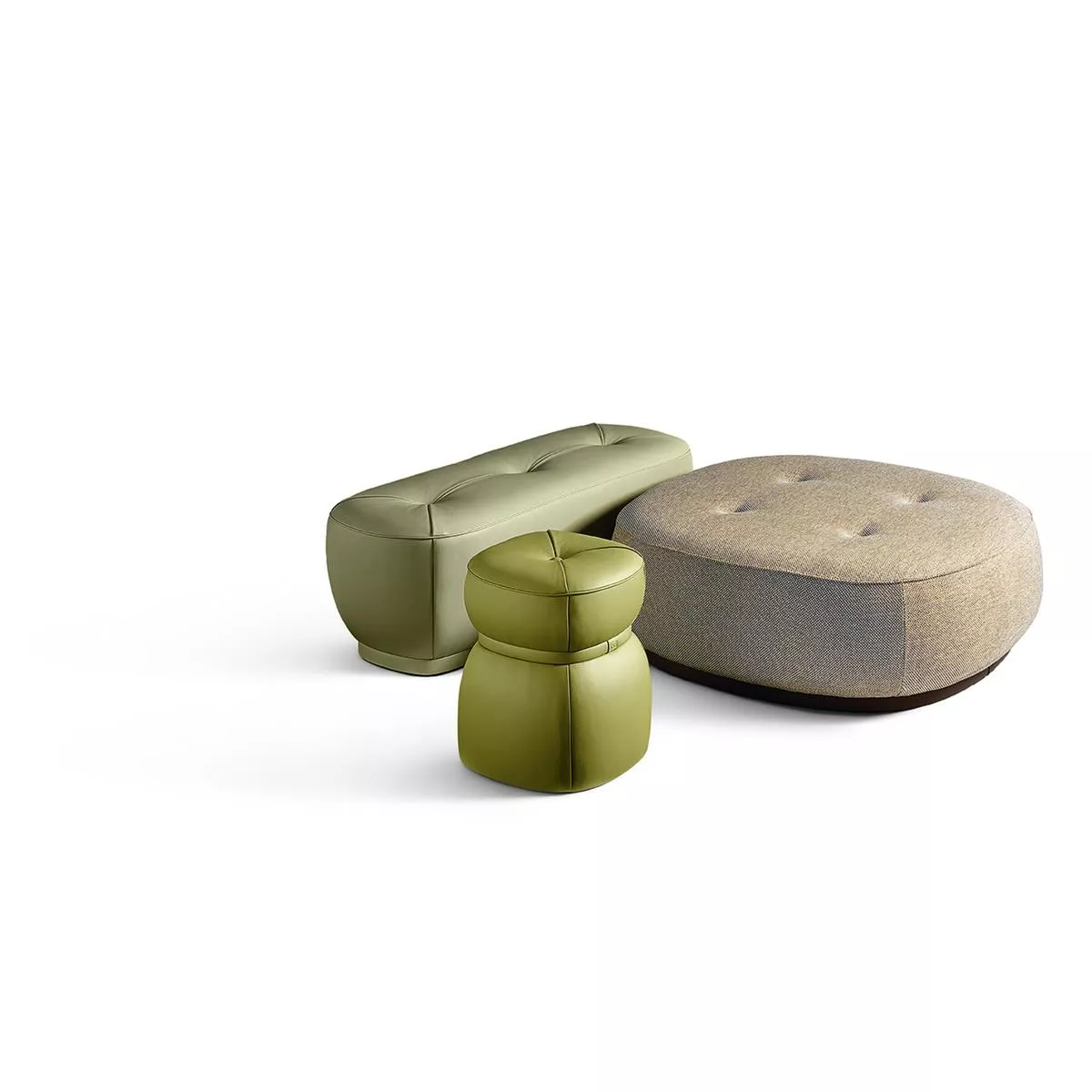 Leplì bir tabure, bank ve puftur. Kensaku Oshiro güçlü bir kimliğe sahip dört çok yönlü parça tasarlıyor. Tasarımcı, geleneksel Poltrona Frau süreçlerinden ve dekorasyonlarından yararlanıyor ve bunları moda dünyasından alınan terzilik detaylarıyla birleştiriyor. Klasik dikişler ve yumuşak kıvrımlar tasarımın kıvrımlı sadeliğini ortaya çıkarıyor. Özellikle taburenin şehvetli kıvrımları kadın formundan ilham alıyor ve tıpkı bir elbisedeki gibi ince bir kemer onun “belini” vurguluyor.