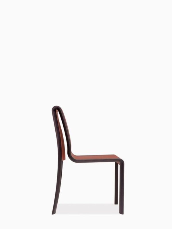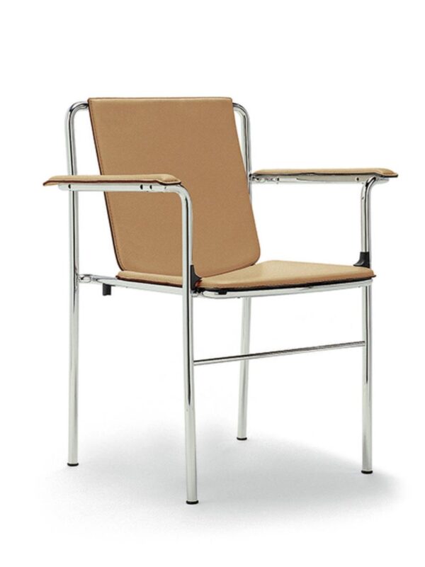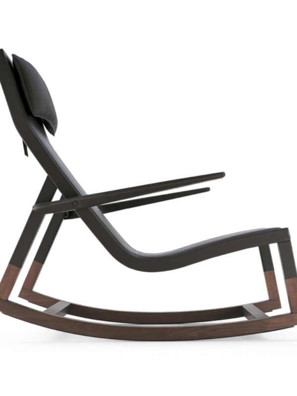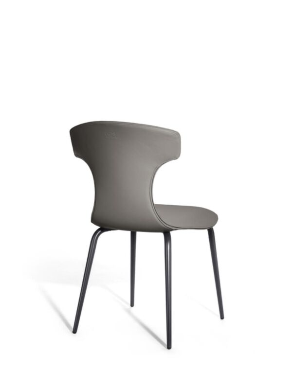 Sırt dayanağının kenarı, ayaklarda da tekrarlanan Rutenyum kaplamalı alüminyum kaplamayla tanımlanıyor. Fitzgerald sandalyenin arkası çift dikey dikiş ve markalı Poltrona Frau logosuyla süslenmiştir.