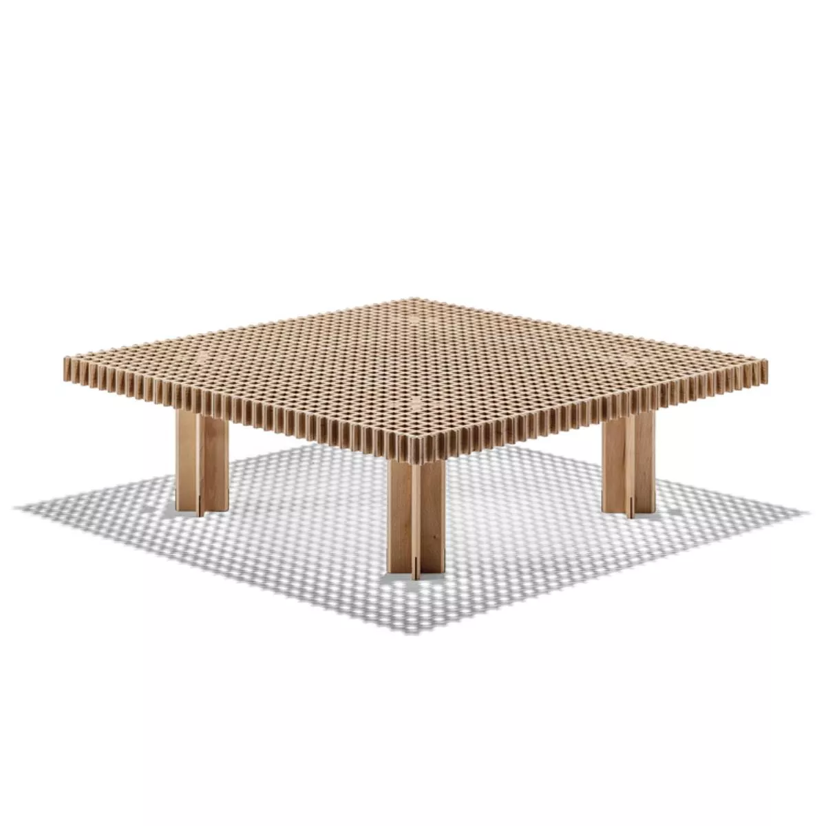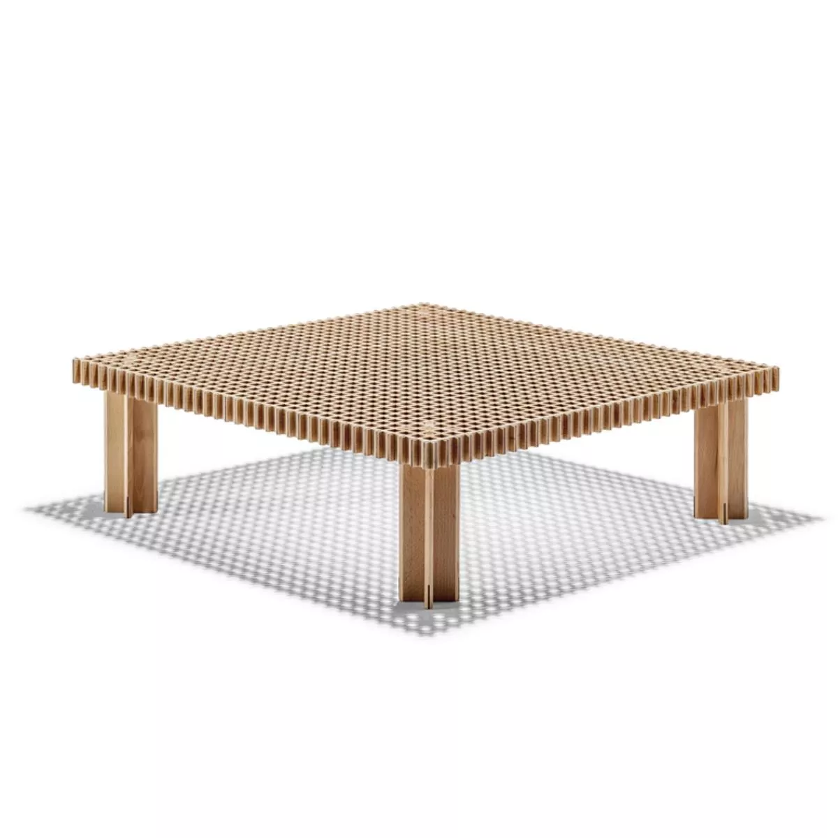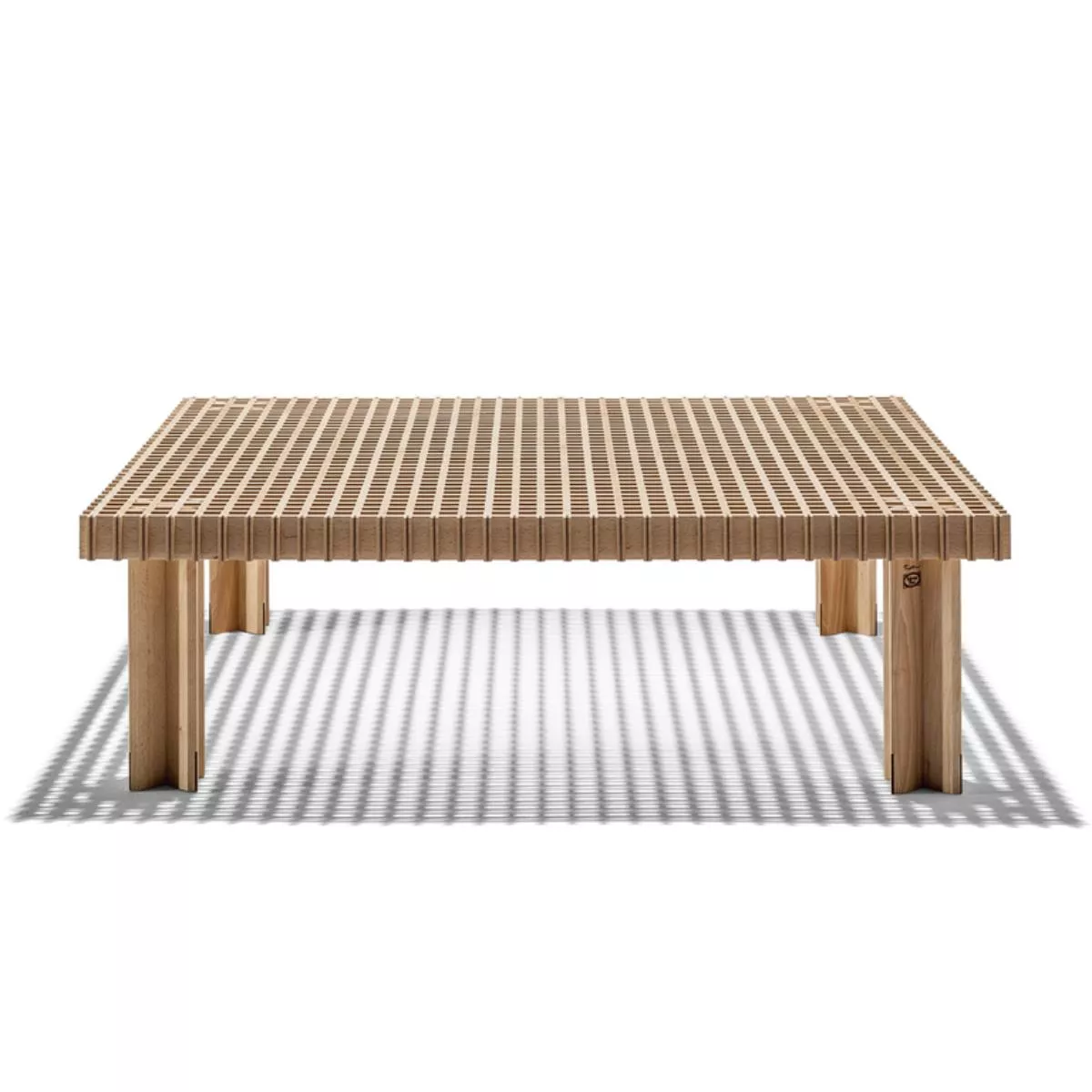 Kayın veya siyah lakeden yapılmış Kyoto masasının 102 cm kare versiyonu 32 cm yüksekliğinde veya 102 x 50 cm versiyonu da 32 cm yüksekliğinde mevcuttur. Yüzey ve bacaklar, üst kısmı oluşturan levhaların uçlarında masif Canaletto ceviz parçaları bulunan, ekstra hafif masif kayın ağacından yapılmıştır. Ahşap levhalar, kare bir desen oluşturan 45°’lik derzlerle birbirine bağlanır. Kayar denge ayakları istenildiği gibi konumlandırılabilir ve siyah lake versiyonda bunların üst kısımları mat kırmızı renktedir. Ayrıca, birbirine monte edilmiş altı modülden oluşan, doğal kayın kaplamalı masa tablasının bir kısmının reprodüksiyonu olan Mini Kyoto versiyonu da bulunmaktadır. Tüm yüzeyler koruyucu şeffaf vernik ile işlenir.