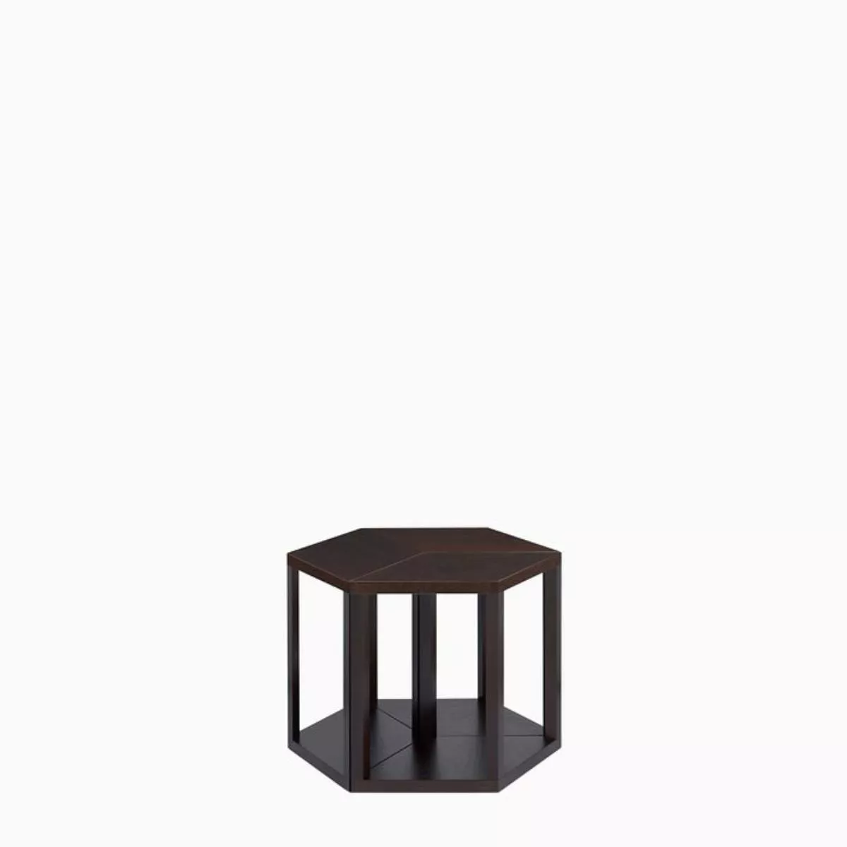 Baklava şeklinde üç küçük masadan oluşan set. Yapı, aynı bölüme sahip dört ayakla birbirine bağlanan bir taban ve bir üst elemandan oluşuyor. Öğeler farklı geometrik şekiller oluşturmak için birleştirilebilir. Ahşap, metal ve shagreen efektli deriden oluşan dört farklı versiyonu mevcuttur. Renkli deri versiyonu ise diğer tüm seçenekler gibi üçlü set olarak alınabileceği gibi tekli olarak da satın alınabiliyor.