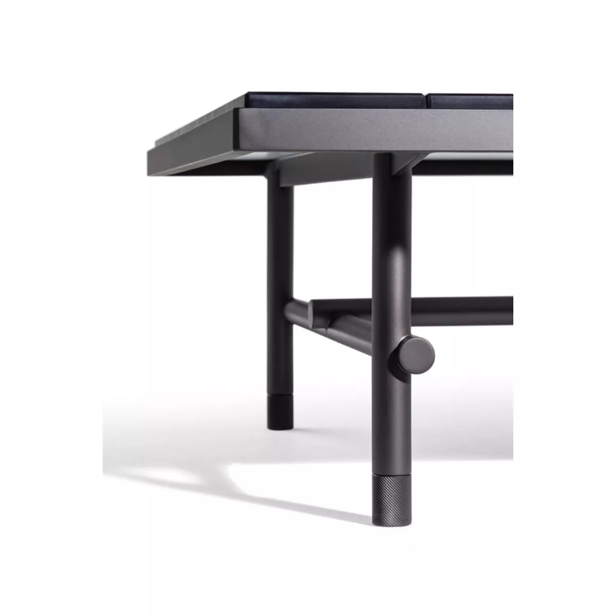 Yan sehpaların yapısı, L profilli bir alüminyum raftan ve çelik borudan yapılmış bir alt tabandan oluşur. Ürünün tamamı perdahlı bir yüzeyle lakelenmiştir. İnce raf, mermer üst kısımlarını destekleyerek kalınlıklarını ve güzelliklerini yapaylık olmadan vurguluyor.