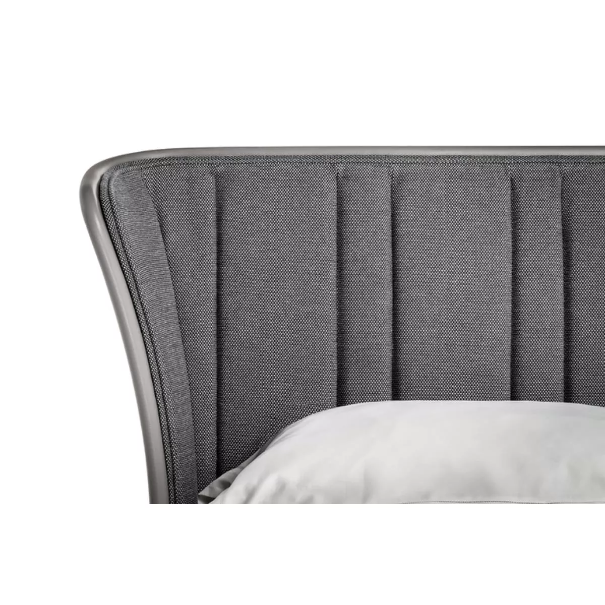 Yumuşak ve cömert hatlarıyla Lola Darling yatak ilk bakışta büyülüyor. Büyük yatak başlığı, teknik yetenek ve zanaatkar bilgi birikimiyle şekillendirilmiş olup, yanlardan hafifçe açılmaktadır. Roberto Lazzeroni, Lola Darling ile ikonik Poltrona Frau capitonné’nin yorumunu sunuyor. Üç boyutluluğundan ödün vermeden onu yumuşatıyor ve modernleştiriyor. Ustalık gerektiren kalitede deri işleme, kumaş başlıklı versiyonda geleneksel düğmelerin yerini ince, özenle dışbükey dikilmiş baklava desenleri veya basit dikey dikişlerle değiştiriyor. Yatak başlığı ve yatak çerçevesinin iç ve dış kenarlarını süsleyen aynı tonda Pelle Frau deri bordür şeritlerinden başlayarak her ayrıntı zarafet yayıyor.