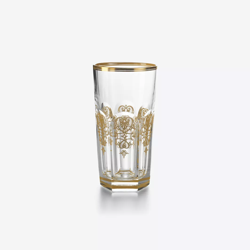 Harcourt Empire eski moda bardak, Harcourt’un muhteşem mimari formunu yeniden ziyaret ediyor. 1841’de oluşturulan Harcourt 1841 koleksiyonu, Baccarat kataloğunun en eski koleksiyonudur ve ikonik tasarımıyla tanınır. Harcourt Empire eski moda bardak, Harcourt 1841 bardakla aynı yapısal taslağı paylaşıyor ancak zarif altın süslemelerle süslenmiş. Camın düz kesim desenine hafif bir el ile altın rengi dekoratif şekiller uygulanmış olup, bardağın dudağı ve tabanı yaldızlı bir süslemeye sahiptir. Zarif altınla tamamlanan ışıltılı berrak kristalin bir vitrini olan Harcourt Empire koleksiyonunda ayrıca bir şarap kadehi, highball kadehi ve şampanya flütü yer alıyor. Baccarat’ın Rivoli kadeh takımı koleksiyonu da yaldızlı özelliklere sahiptir. Harcourt, yaratıcı kokteyl tutkunları ve nadir viski severlere yönelik bir koleksiyondur.