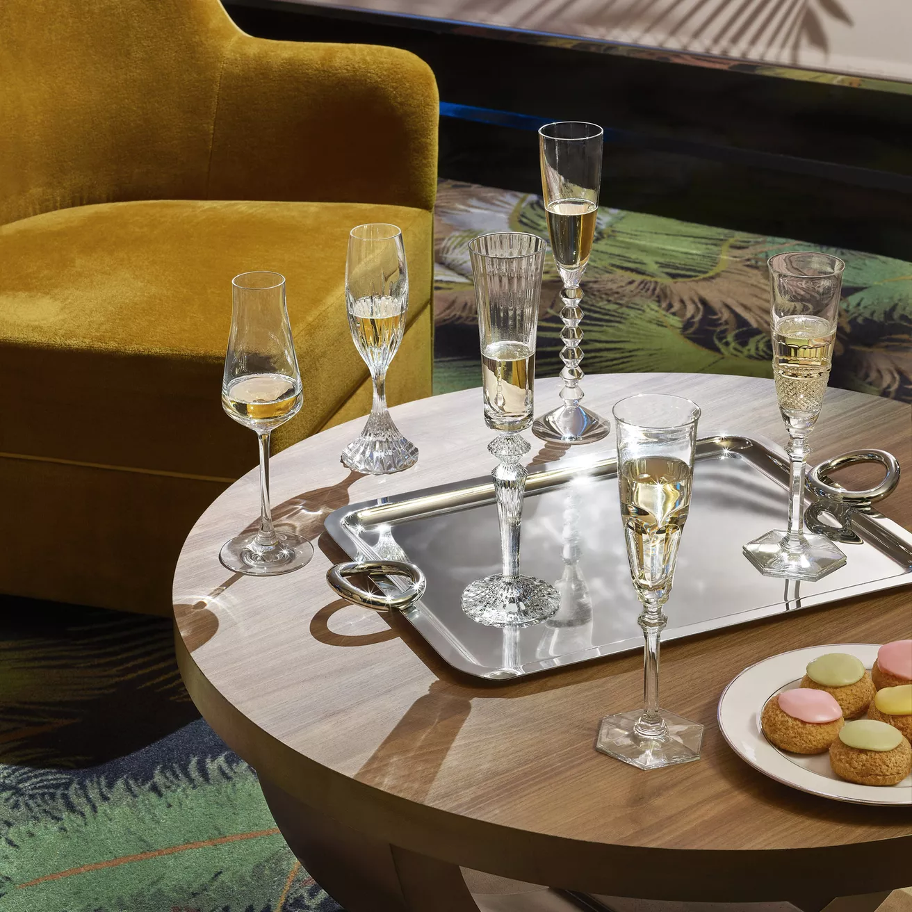 Baccarat, gece kuşları ve parti tutkunları için altı şampanya bardağından oluşan sıra dışı bir set tasarladı. Şampanya, Royal Mojito veya Bellini, misafirlerinizi şaşırtın ve partilerinize tüm gece boyunca gerçek bir heyecan yaşatın. Hayata biraz ışıltı katmak için ideal bir hediye. Bu kutuda 6 flüt bulunur: Mille Nuits 2810597, Vega 2811802, Harcourt Eve 2802588, Diamant 2807400, Château Baccarat 2611149 ve Massena 2811797.