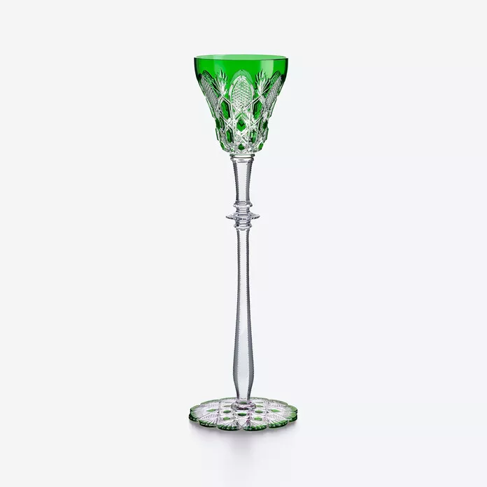 Çar II. Nicholas için yaratılan bu berrak kristal kase, renkli kristalle kaplanmış, yüksek saplı, fistolu tabanı, elmas ve palmiye yaprağı süslemeleriyle göz kamaştırıyor. Üç farklı renk yelpazesinden oluşan bu olağanüstü set, İmparatorluk Sarayı’ndaki birçok aristokratın beğenisini kazandı ve bugüne kadar Baccarat Evi’nin mükemmelliğinin bir yansımasıdır. Olağanüstü, kraliyet yemeği için üç farklı boyutta bardaklar ve şampanya kadehleri mevcuttur.