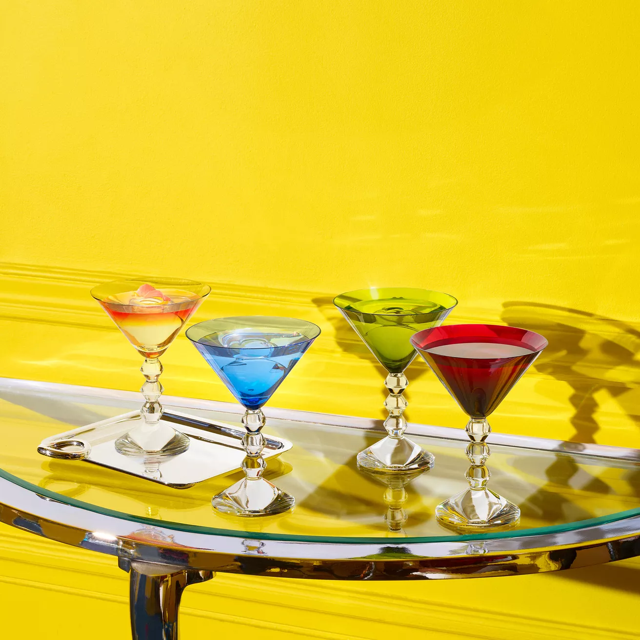Evde mükemmel sek martiniler için mükemmel bardak seti. Arkadaşlarınızı davet edin ve keyfini çıkarın! Geometrik gövde göz alıcıdır; birbirine dizilmiş zarif boncuklara veya Brancusi’nin geometrik totemlerine benzeyen diabolo şekilli üç Baccarat kristal parçasından oluşan bir yığın. İkonik soy.