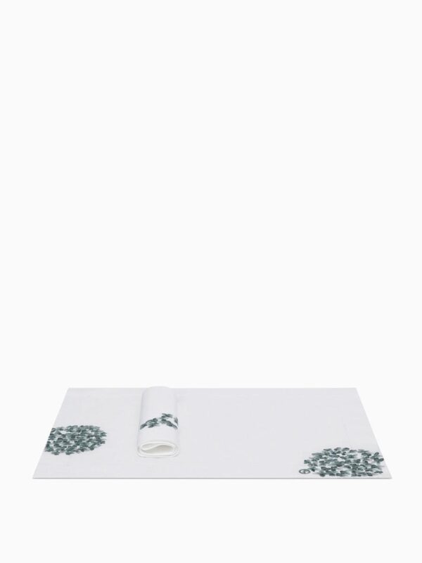 Servis altlığı, bardak altlığı, peçete ve peçete halkasından oluşan masa takımı. Peçete halkası Nice kumaştan yapılmıştır; servis altlıkları ve bardak altlıkları, bir dizi nakışla (GA logosu ve kenarlıklar) zenginleştirilmiş Avrupa keteninden yapılmıştır. Set, her biri Nice kumaşın eşleşen bir çeşidine sahip farklı renk kombinasyonlarında mevcuttur.