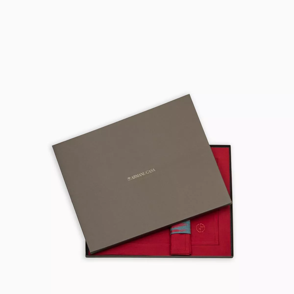 Servis altlığı, bardak altlığı, peçete ve peçete halkasından oluşan masa takımı. Peçete halkası Nice kumaştan yapılmıştır; servis altlıkları ve bardak altlıkları, bir dizi nakışla (GA logosu ve kenarlıklar) zenginleştirilmiş Avrupa keteninden yapılmıştır. Set, her biri Nice kumaşın eşleşen bir çeşidine sahip farklı renk kombinasyonlarında mevcuttur.