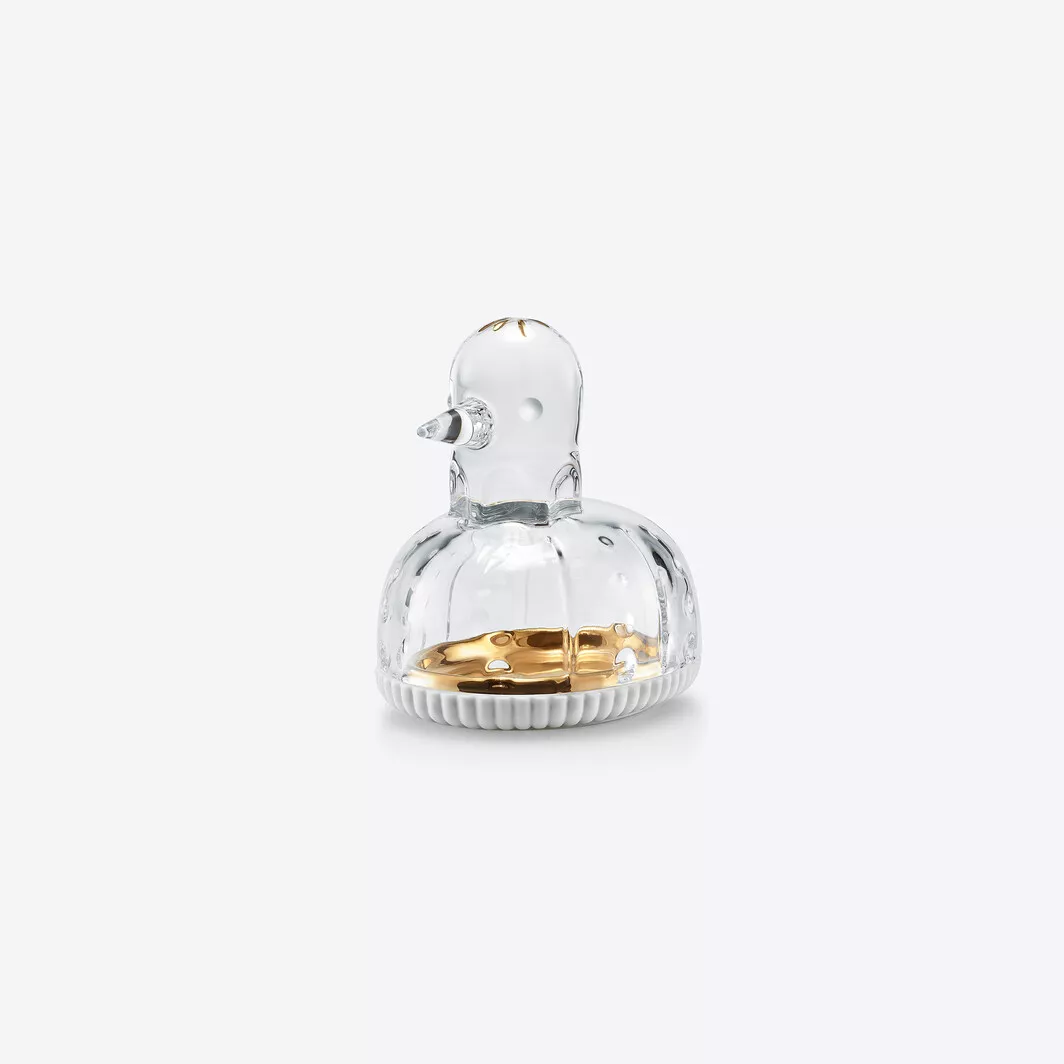 Jaime Hayon tarafından yaratılan kristal ve porselenden yapılmış Zoo mücevher kutusu, en güzel süslerinizi ve küçük değerli nesnelerinizi saklamak için ideal tasarım aksesuarıdır. Ördek şeklindeki kristal kapak ve Lladró imzalı porselen tabandan oluşan mücevher kutusu, Jaime Hayon tarafından yeniden ele alındı ve benzersiz ve ilginç bir tarz sergiliyor. Sivri gagası ve zarif biçimde kesilmiş yuvarlak siluetiyle ördek, iç mekanınıza biraz fantezi katıyor. Küçük, gösterişli bir detay olarak, hayvanın kafasına elle uygulanan birkaç altın dokunuş, son imzayı sağlıyor.