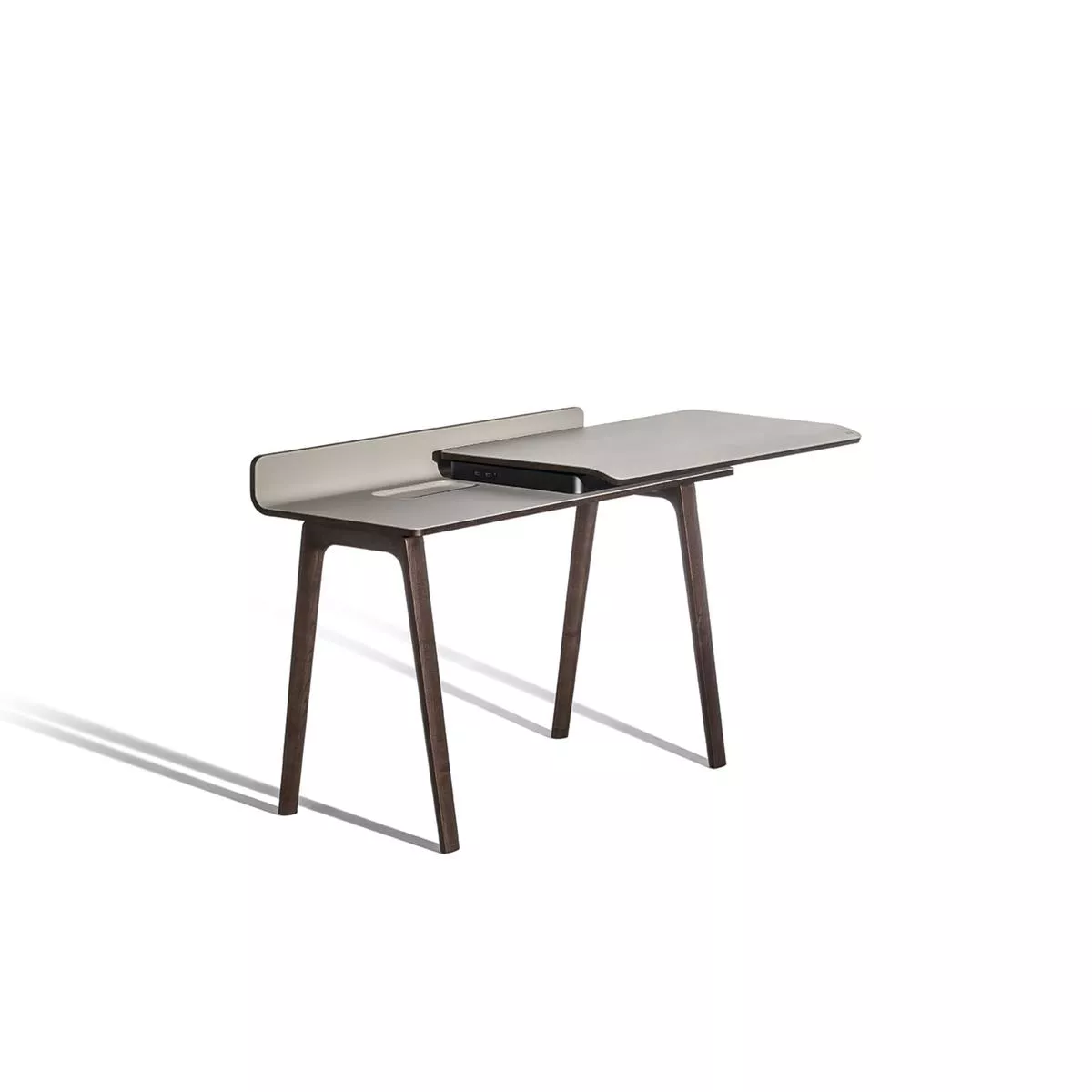 Poltrona Frau’nun Iren masası, masaüstünün masif dişbudak ağacından yapılmış bir testere tezgahı tabanıyla desteklendiği bağımsız bir versiyona veya braketlerle desteklenen duvara monte bir versiyona sahiptir. Müşteri, siparişini verirken masaüstünün sola mı yoksa sağa mı kayacağını seçebilir.