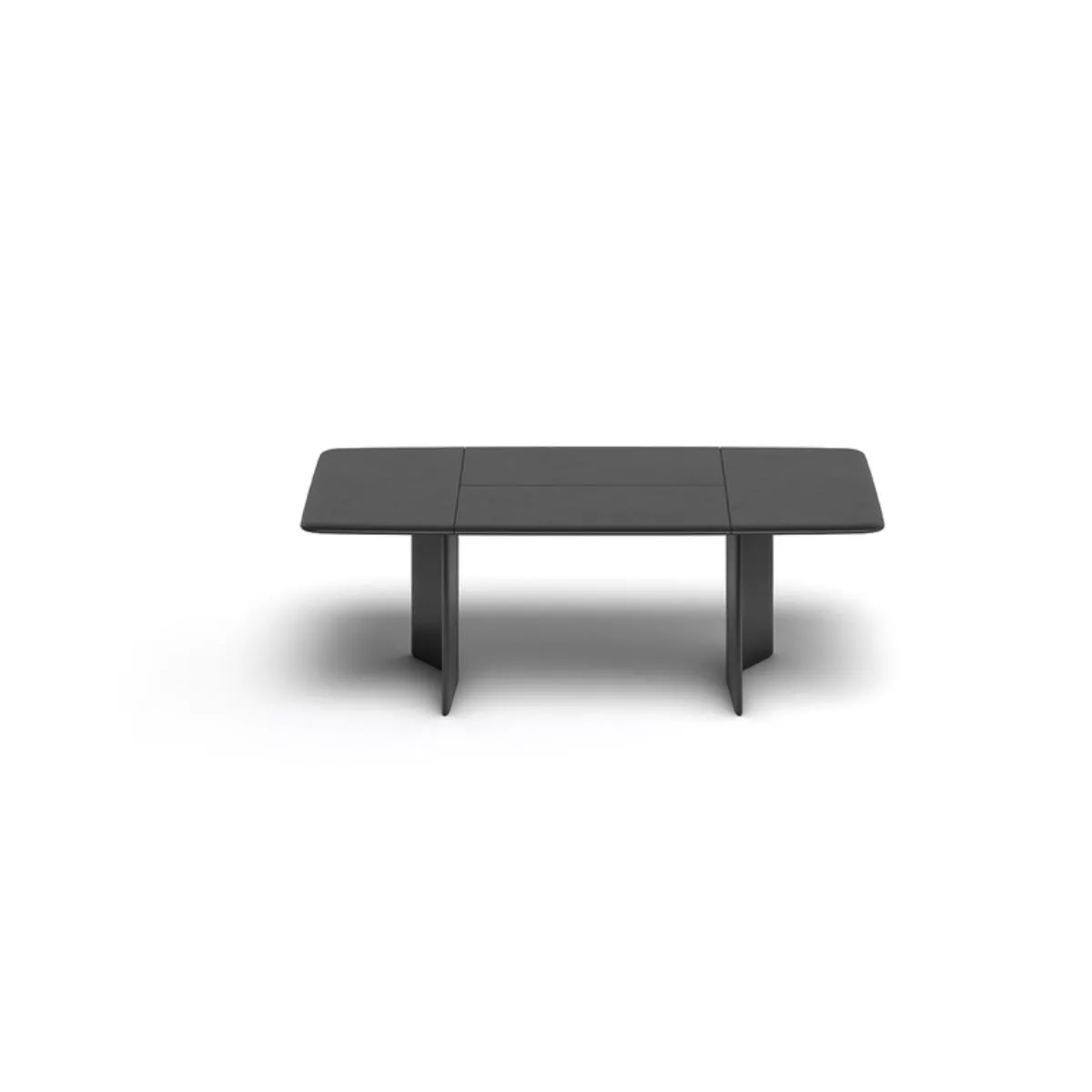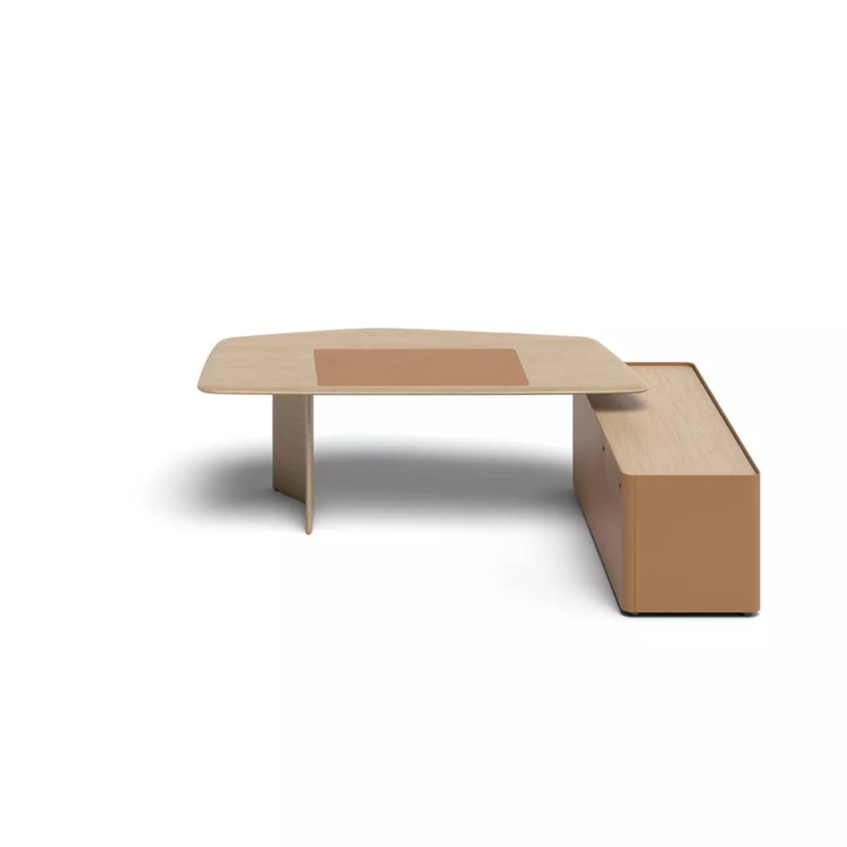 Trust Masa çeşidi, pürüzsüz profillerle birleştirdiği klasik dikdörtgen formu korur. Ara boyutta her iki modelin de asimetrik versiyonu mevcuttur: bir tarafta ayak, diğer tarafta dolap ile desteklenir.
