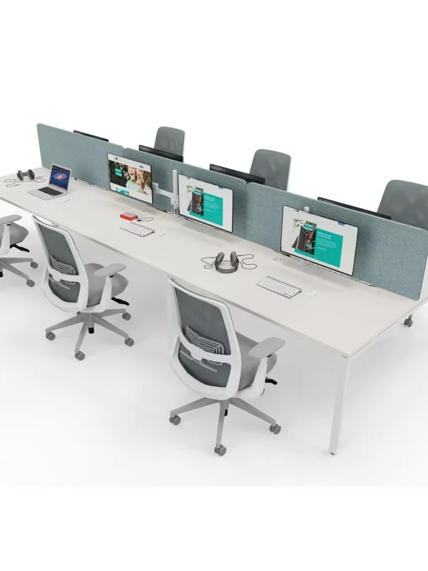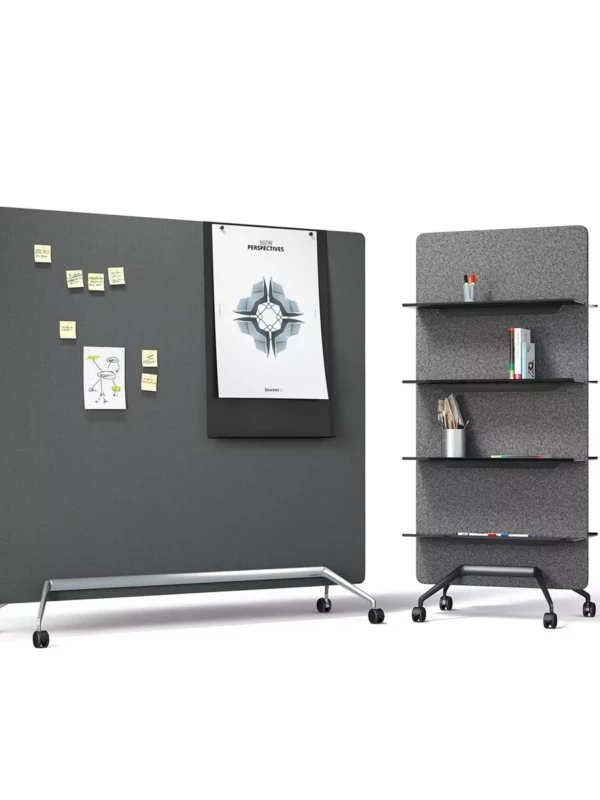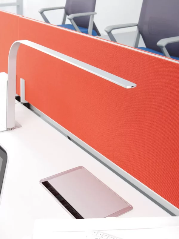 Masaların yatay çizgileri dikey Trust Screen panelleriyle etkileşim halindedir. Düz veya kavisli geometriye sahip ince diyaframlar, boşlukları kapatmadan sınırlandırmanıza olanak tanır. Mesafe koymadan ayırmak ve bir araya getirmek amacında tasarlanmıştır. Raf ve depolama üniteleriyle istenildiği gibi aksesuarlanabilen paneller, montajı kolay ve kendinden destekli sistemi sayesinde modüler olduğundan ofis ortamında özel alanlar yaratabilir.