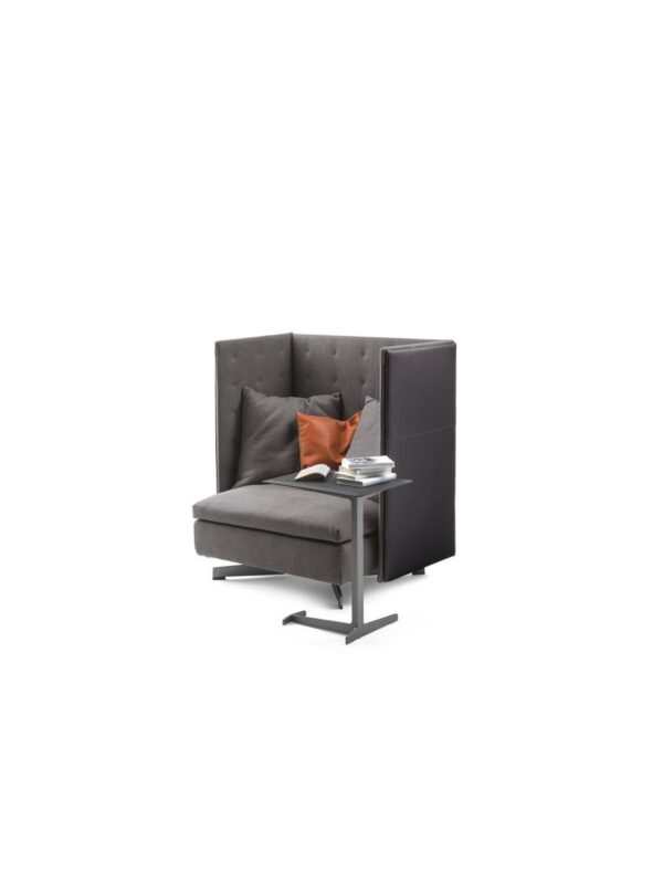 İsteğe bağlı takılı döner masa, iş aletleri ve kişisel eşyalar için denge ve esneklik sağlar. Feather kanepe, tek başına durabilen veya diğer mobilyaları tamamlayabilen davetkar bir parçadır.