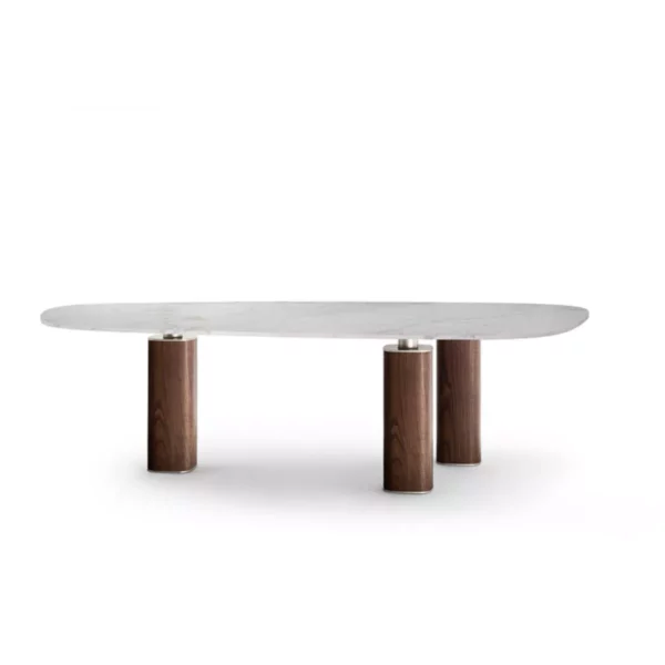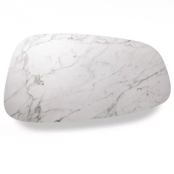 Altı Bob Bistrot yan sehpası, çeşitli çaplarda yuvarlak bir masa tablasına veya kare bir tablaya sahip olabilir. Üst kısımlar Fenix NTM®’de Grigio Londra veya Nero Ingo renklerinde, Canaletto Ceviz kaplamalı huş kontrplaktan veya Calacatta altın mermerinden (yüzey direncini artırmak için şeffaf polyester boyanın uygulandığı parlak kaplamalı) veya doğal bir sonuç için yarı parlak kaplama). Bob Bistrot yan sehpaları cilalı fırçalanmış çelikten çapraz şekilli bir tabana sahiptir ve farklı yüksekliklerde mevcuttur. Bacağın üst kısmı, Canaletto ceviziyle kaplanabilen veya beyaz, gri veya siyaha boyanabilen çelik yaka ile donatılmış çelik bir yapıya sahiptir.